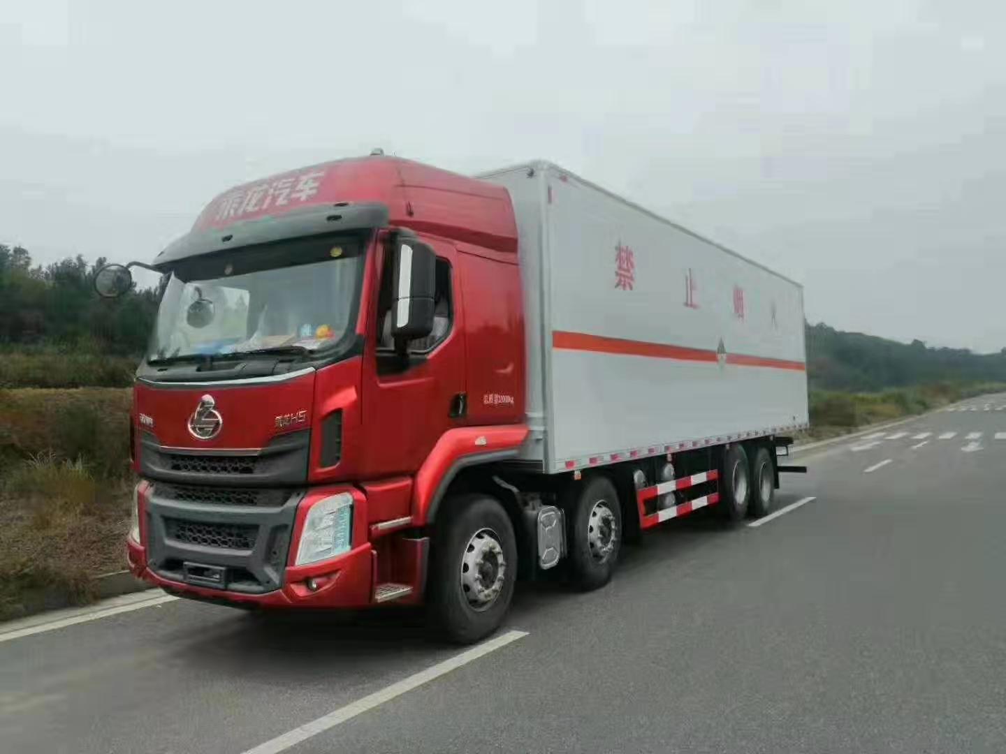 厢体配置:整车尺寸:11950×?2550×3950;厢体尺寸:9400×2420×2500 ,严格按照公告尺寸制作,外板采用1mm厚冷轧板有一次性成型的百叶窗,内饰为导电性能良好的铝板有透气孔,内衬为矩形管骨架牢靠稳定,内部填充为透气防潮阻燃的挤塑板,四种材料经现代工艺复合而成,厢体外部上下铝合金型材包边,底板和车厢前下部铺橡胶皮,后门双开,右侧两个双开门,内部有固定货物的卧环,车辆外部有静电带、灭火器、防火罩,车厢内安装烟雾报警器和门防盗报警器,严格按照国家危险品相关