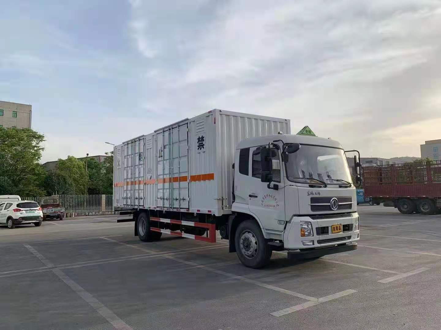 东风天锦二手新杂项危险品车整车型号:DFH5160XZWBX2JV型杂项危险物品厢式运输车,D530平顶排半驾驶室,风神EQH160-52发动机,DF6S650变速箱,4.5吨前桥,8吨后桥,5600mm轴距,板簧11/-,速比5.286,232×75×6.5mm车架,钢200L油箱,10R22.5 16PR轮胎,带空调,带前盘、限速、ABS、行车记录仪、危险警示灯,带EBS FCWS LDWS TPMS 。整车外形尺寸:整车外形尺寸:9995×2550×3760mm,货箱内尺寸:7650×2450×2400mm,厢体材质瓦楞板,厢体底部铺防静电胶皮,右侧带2个侧门,安装烟雾报警器防盗报警器,厢内前面铺防撞胶皮,其余标配。整车颜色:白色。整车已上户!