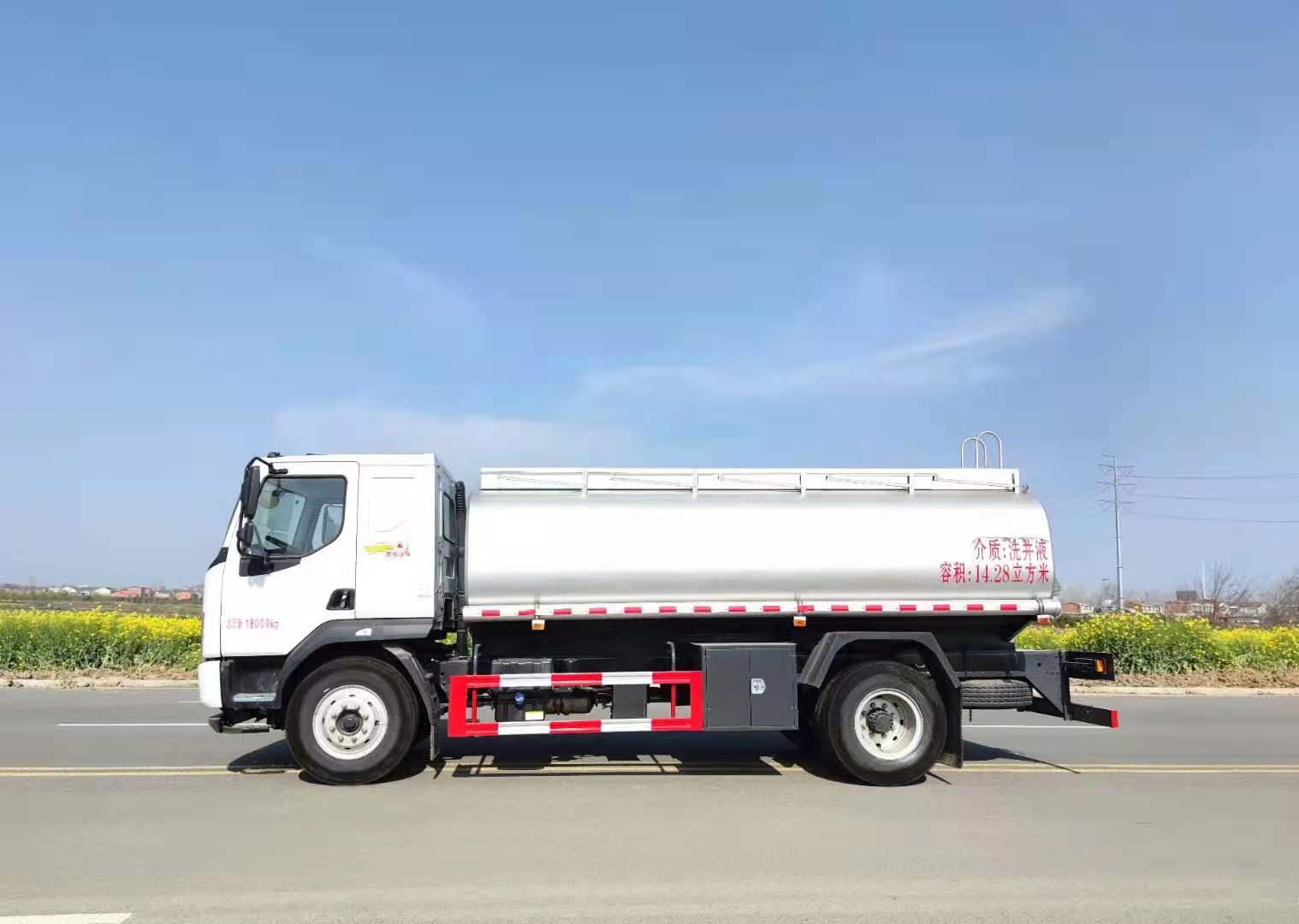 柳汽国六单桥15方供液车,玉柴200马力,法士特八档,4500轴距,驾驶室已切换成M3驾驶室,整车不到7吨,总质量18吨,燃油环保齐全,底盘有现货.罐体选择碳钢或304#不锈钢材质,实际4mm厚板材制作。罐体底口带一个紧急切断阀能一次性彻底卸干净,Φ65不锈钢管道,Φ65不锈钢阀门出口。罐体顶部选装300升的镀锌材质水箱活动式安装,网状走道。罐顶带防护栏。两边炮筒采用PC胶管扎带式上装。带可泵进泵出不锈钢泵,另配两根输胶管。有燃油公告、环保公告。供方为需方提供底盘合格证,供液车整车合格证,机动车发票及随车工具、东风底盘走保手册。