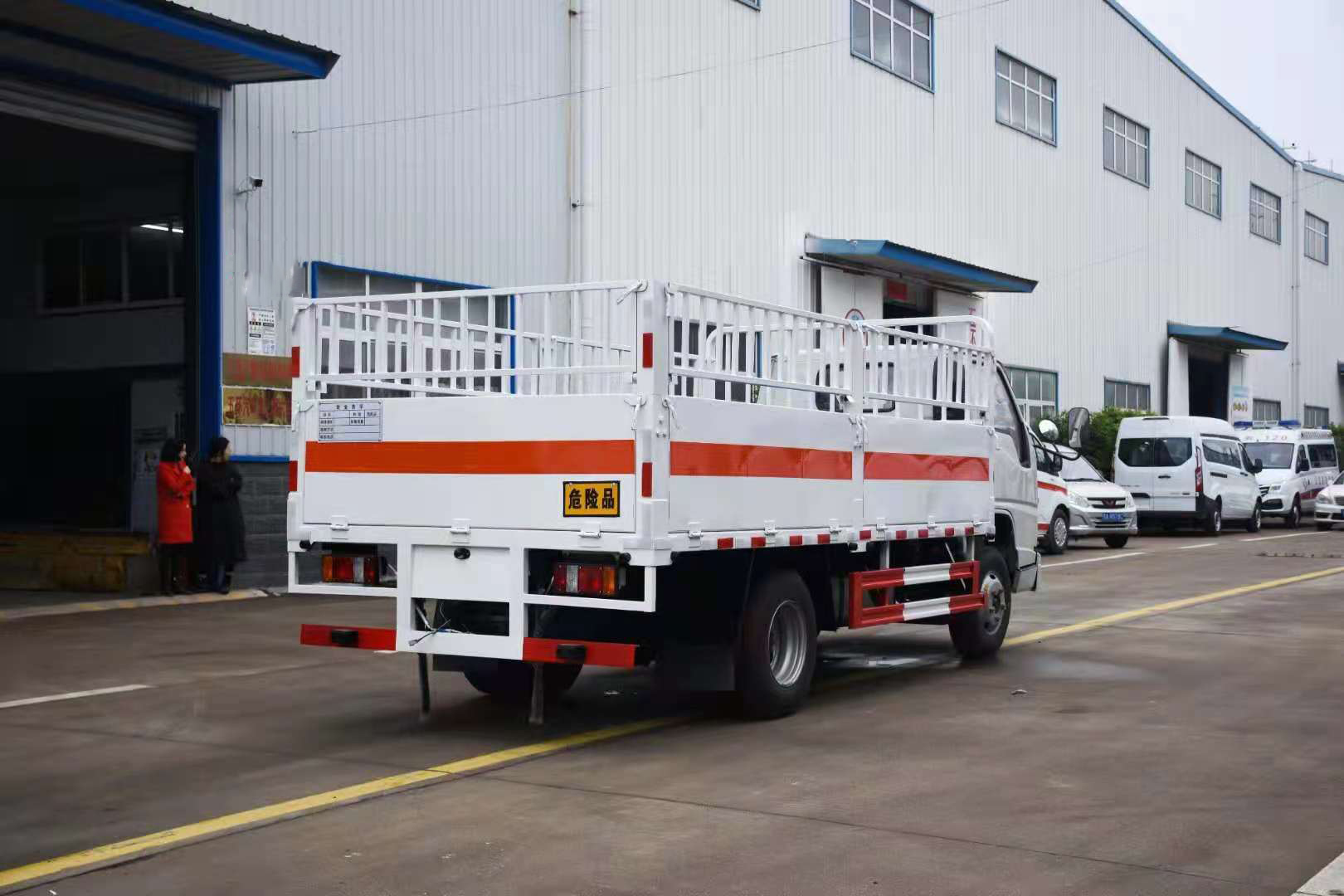 江铃蓝牌气瓶运输车整车型号:HCQ5041TQPJX6型气瓶运输车,3360轴距,江铃顺达单排驾驶室,江铃115马力发动机,5档变速箱,3.5吨后桥,7.00R16轮胎,油刹,电动门窗,多功能方向盘,空调,双预警。整车尺寸:5995×2080×2220mm,厢体尺寸:4150×1930×600mm,严格按照公告尺寸制作,边2底3材质,底板上铺静电胶皮,侧板上带可卸式高栏,配备灭火器,三角顶灯,静电拖带等,严格按照国家危险品法规进行“易燃气体”标识粘贴等 。
