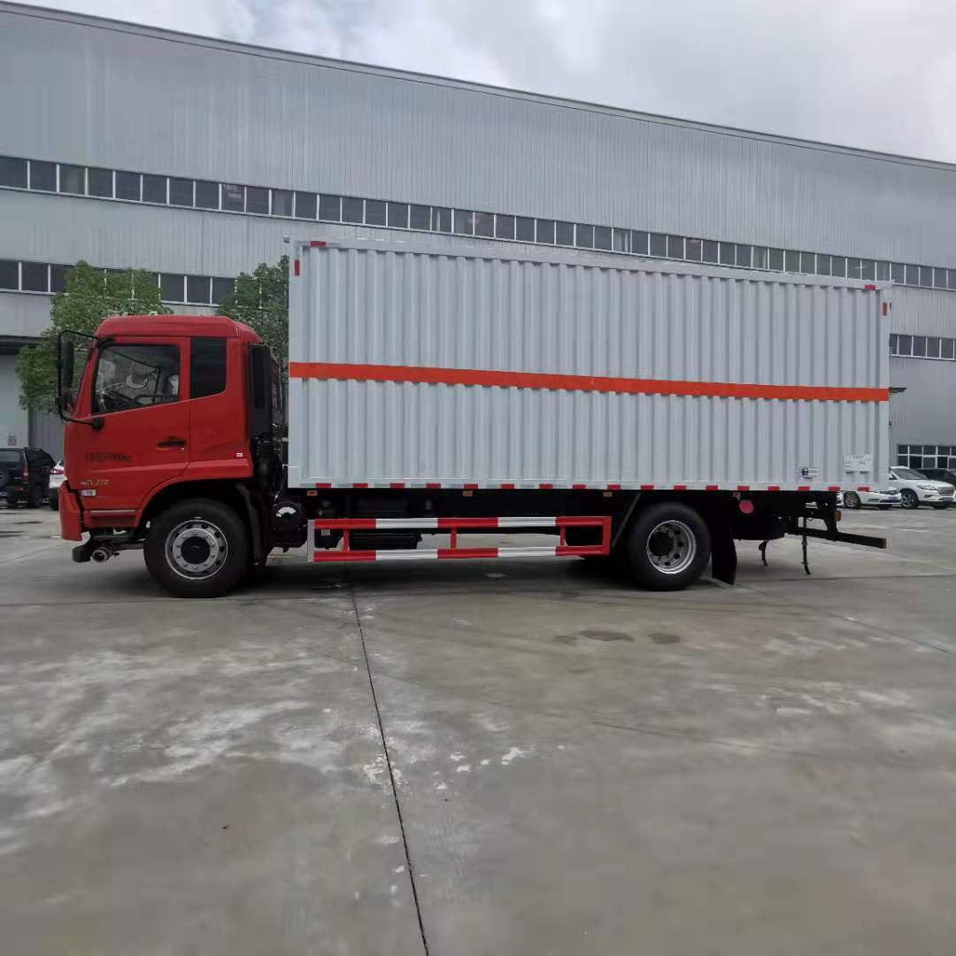 国六东风天锦瓦楞板厢式运输车采用东风天锦专用危险品新规底盘,D530排半标准顶,B6.2NS6B210发动机,8JS85E-C变速箱,4.5T前桥,275/80R22.5 18PR轮胎,有行驶记录仪,原厂空调,电源总开关,排气制动,电动玻璃中控锁,4700轴距。EBS、FCWS、LDWS、TPMS。ESC、ECAS外部尺寸:9000*2550*3500mm 内部尺寸:6600*2400*2200mm。厢体采用可产生静电屏蔽效应的冷轧钢板,中间为B1级阻燃泡沫,内饰铝板。底板为平板上铺防静电胶皮。厢体右侧开门,厢体上侧透气孔。厢内两侧加装固定货物卧环,后部带防盗报警器,顶部带烟雾报警器。