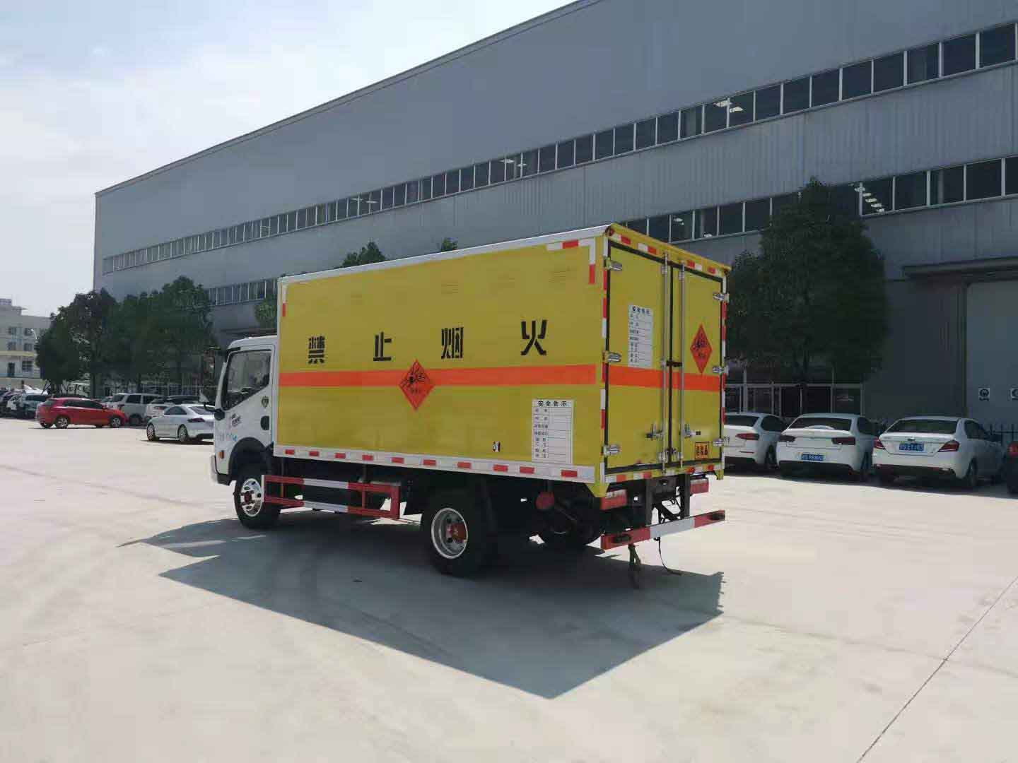 东风多利卡玉柴140马力爆破器材运输车厢体外板采用冷轧钢板一次性冲压成型的百叶窗,内饰为导电性能良好的铝板有透气孔,内衬为矩形管骨架牢靠稳定,骨架内部填充为透气防潮阻燃的挤塑板。厢体外部四周铝合金型材包边,底板和车厢前下部铺橡胶皮,后门双开,右侧选装侧开门,内部安装固定货物的卧环或腰栏,安装烟雾报警器、防盗感应器。车身附件静电接地带、灭火器、防火罩、危险品三角灯、橙色反光带、菱形标志牌、危险品牌、安全告示齐全。