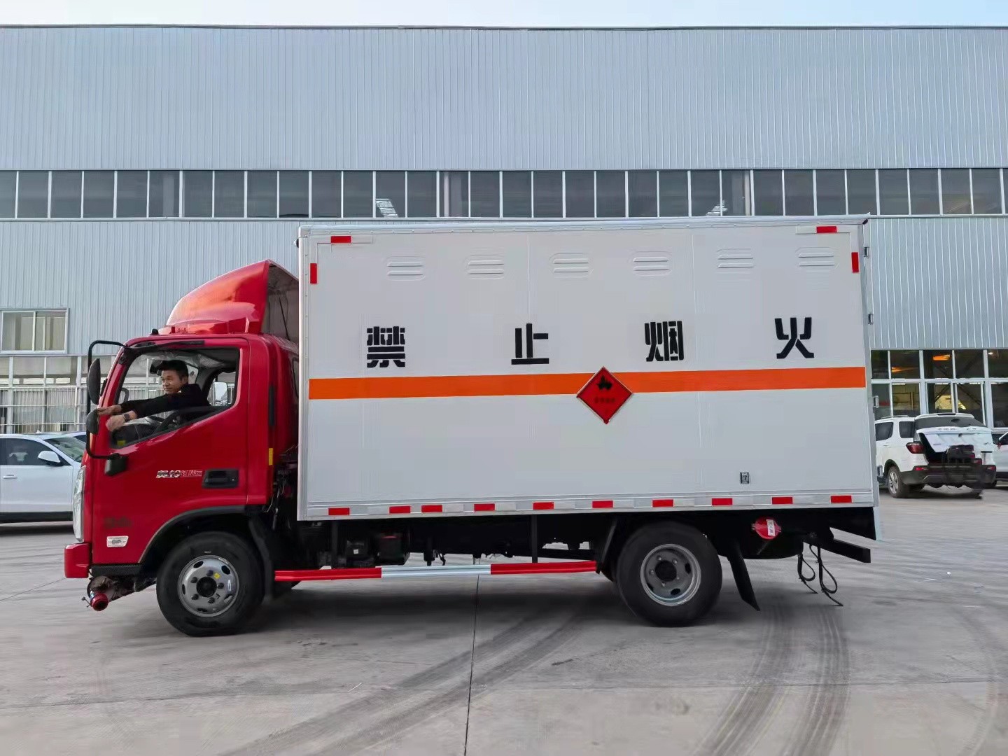 奥铃品牌作为福田汽车战略业务品牌之一,中国轻卡领军品牌。以“科技奥铃,承载未来”为品牌口号,链合欧美日中全球领先科技,致力于用科技驱动中国轻卡升级换代。同时奥铃以自身不断发展来承载客户的未来、员工的未来及整个行业的未来。福田奥铃国六红色易燃液体厢式运输车整车型号:CSC5048XRYB6,箱体采用烤漆板,康明斯131马力,核载900kg,货箱4.08米,发动机还可选全柴130马力,还可出1类爆破,2类气瓶,气体。“福田康明斯+福田采埃孚+新一代美桥”的独有钻石动力链,使福田奥铃展示出优于竞品的性能表现。全新升级的福田康明斯F系列国六发动机,采用迭代的非EGR、DPF+DOC+SCR+ASC一体式后处理系统,转化率达96%-99%,一步到位满足国六b阶段法规;全球产品精准匹配中国市场需求,通过应用优化增压、缸内制动、自动起停、加强热管理等先进技术,实现功率升级、扭矩升级,动力提升20%、扭矩提升10%-25%,加速性能大幅提升,在兼顾环保性能的同时,动力不减、油耗不增,达到动力、油耗、成本和排放的最佳平衡,有效解决短运距城配运输中对高时效的迫切需求。