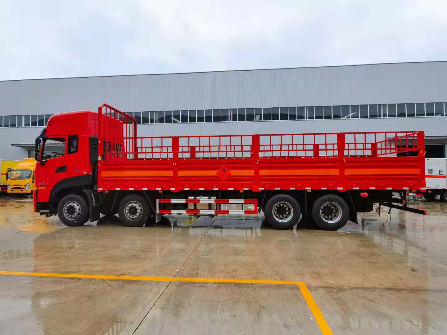 东风天龙前四后八KL国六气瓶车采用的是可拆卸式 高栏,整车采用红色更亮丽耀眼,货箱尺寸可达9米4,带液压尾板,整车不超重,重点是该车匹配的是高顶双卧驾驶室,危险品标配两人,乘坐休息两不误。该车支持定制,可分期付款,欢迎各新老客户来电咨询订购!