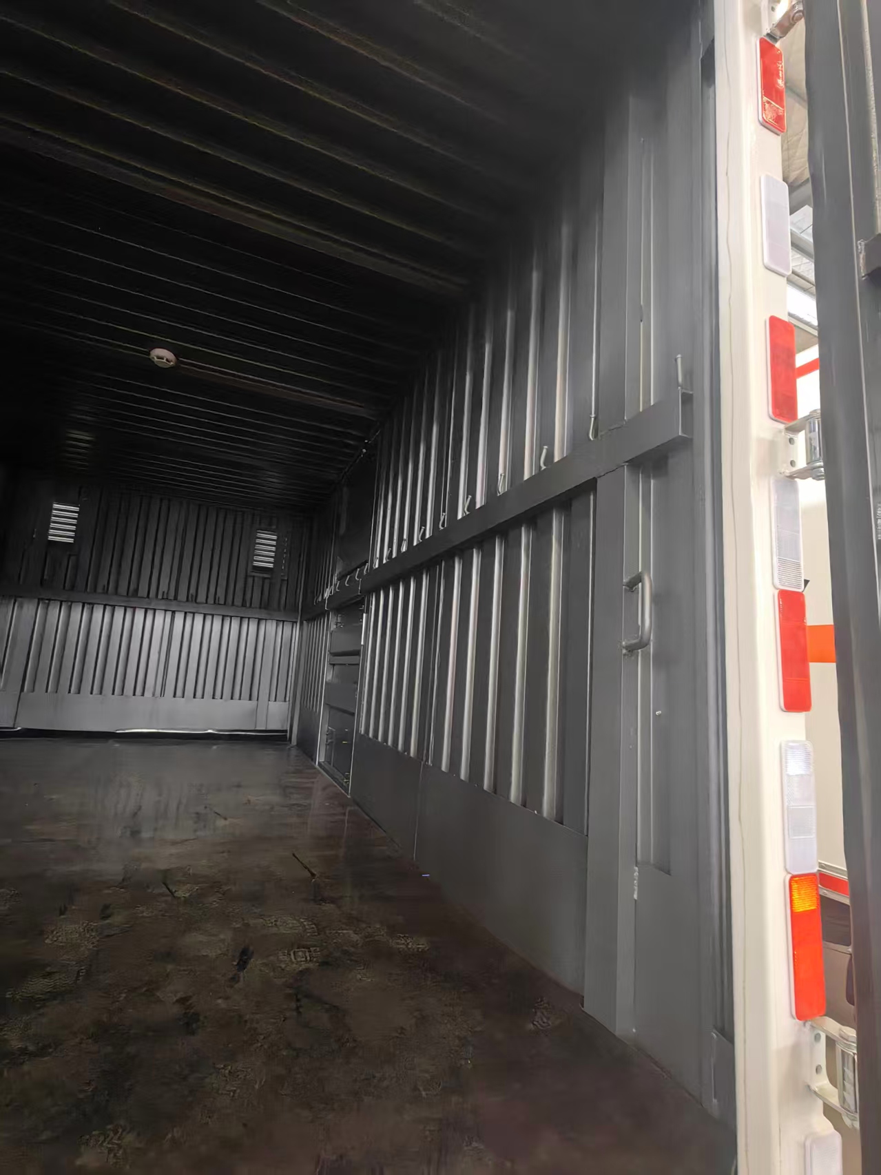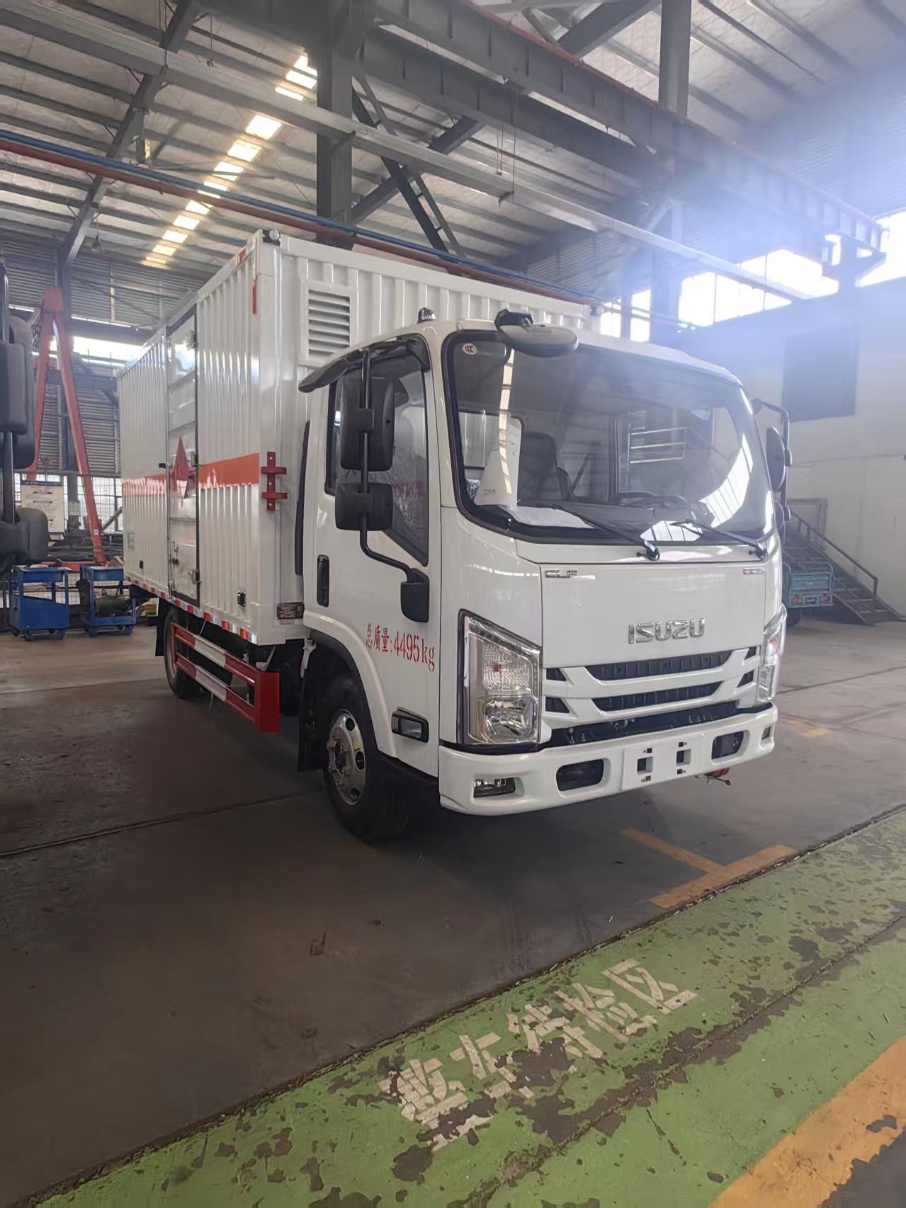 五十铃易燃气体厢式车根据用户要求定制的是宽体3人座驾驶室,为了让用户购车更优惠及检修更方便,用户选用的是瓦楞板箱体。当然车厢为了扎实牢固,公司箱体内部全包采用的是槽钢固定,并设置有专门的拉钩。货箱长达4米2,容积高达16立方。无论是装短途还是长途都都可以轻松驾驭。