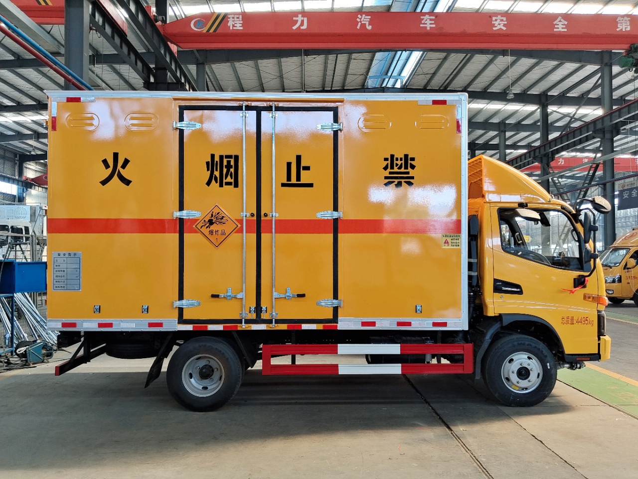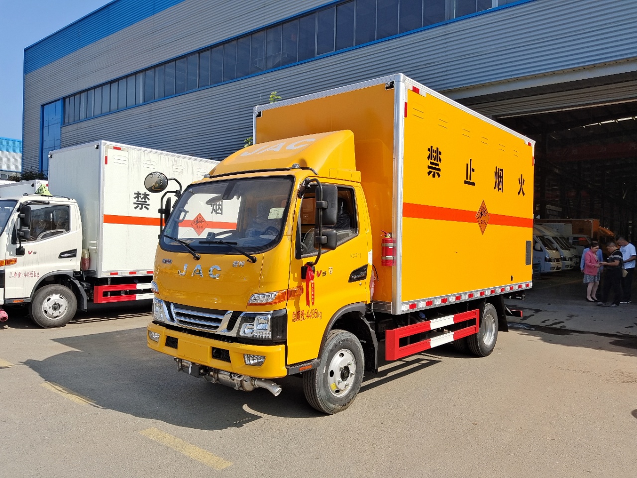 江淮帅铃E国六150马力爆破车选用的是江淮危化专用底盘,安康150马力发动机,6档变速箱,3365轴距,700轮胎,断气刹,原装空调,前盘制动,ABS,限速装置,新规双预警。宽敞的驾驶室,3人座,让您在驾乘舒适的情况更符合车辆要求。底盘离地距离高,通过性更强。厢体为复合板结构,外冷轧钢板,中间夹层阻燃泡沫,内铝板,底板上铺防静电胶皮。厢内两侧加装固定货物卧环,门框带防盗报警器,顶部带烟雾报警器,厢体右侧选装侧门,随车配2个灭火器,危险标志牌,防火帽。