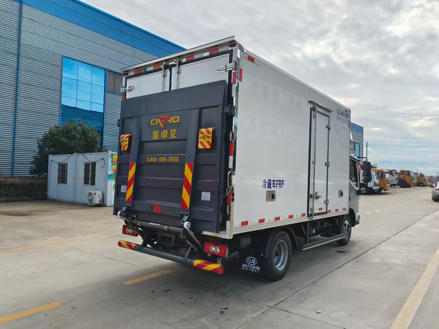针对蓝牌的车型,加之用户都是跑运输车的,车辆配置有昼行灯、双顶置文件柜、手动调节,宽度1880单排驾驶室、导流罩、冷暖一体,电动空调、有定速巡航、自动大灯、座椅可放平、7时彩屏仪表。冷藏车一般是跑长途比较多,所以MP3、蓝牙功能、卤素大灯、有一键锁车升商、电控驻车制动都一应俱全。