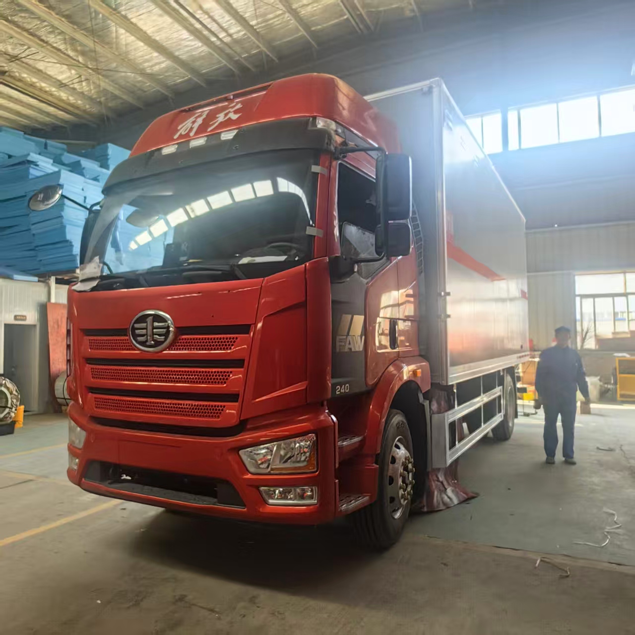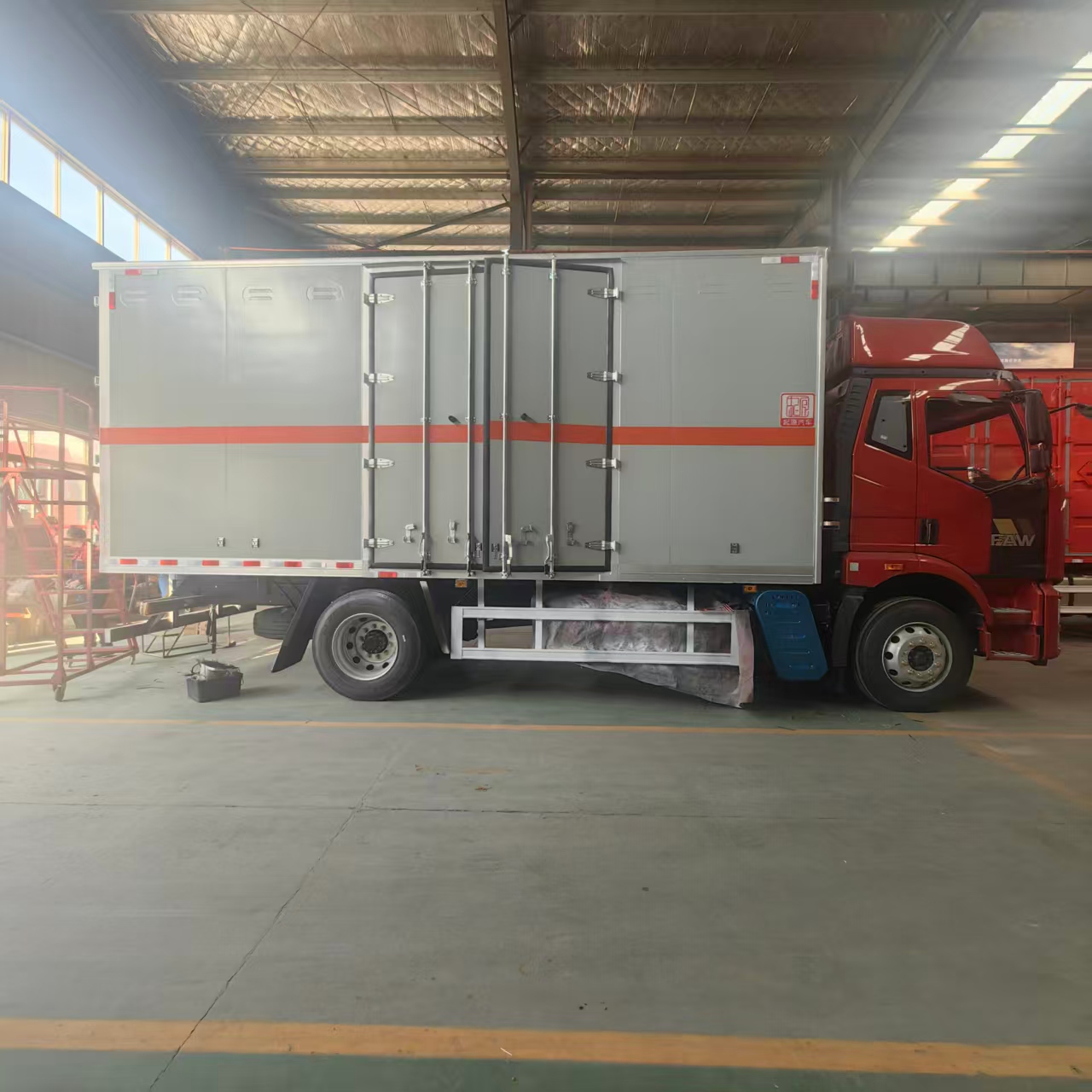 解放J6L灰色箱体爆破车是目前单桥车型中非常典型的代表,在市面上看到的长途运输车,都是长春解放为主,性能稳定车辆配置更齐全。针对运输要求,爆破的车厢可分为烟椛、民爆品、吙工品等类别,所以颜色区别会很大。采用的是大柴240马力或者大柴220马力发动机,针对长途运输车辆设计的是高顶双卧,卧铺宽驾驶员休息更好。红色的驾驶室匹配灰色的箱体,外观看起来更大气。