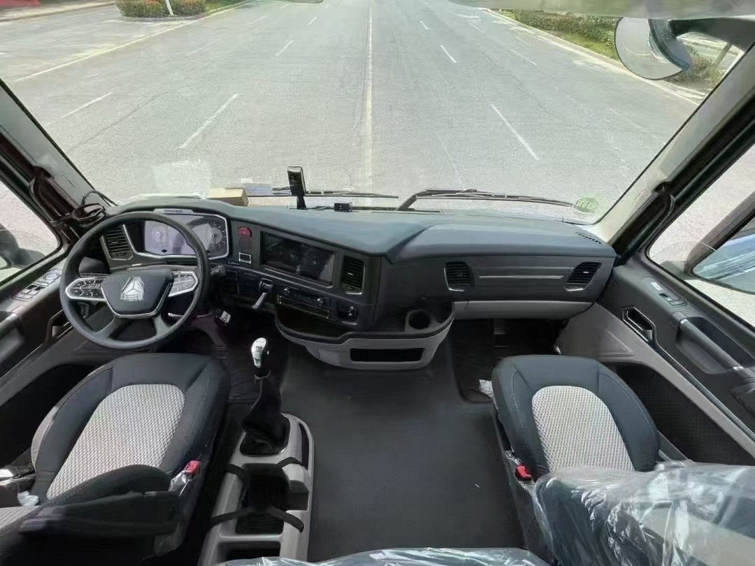 重汽豪沃TS7国六6米8冷藏车箱体内尺寸6800×2450×2500mm,采用的是TS7-E经典版驾驶室;卧铺控制开关;多功能方向盘;电动电加热后视镜;MC07H.33-61发动机;HW11712STC变速箱;1094自调臂前轴(鼓);MCJ09BGQ自调臂单后桥(鼓);速比3.91;驾驶室手电一体电动举升;单层车架(6/232);前少后标准版多片簧(3/7+3);国产方向机;公路版进气系统;限速89km/h;圆柱形消声器排气系统;ABS(4S/4M);12.3吋全高清液晶中控屏(配四方位);低位金属保险杠;前铝合金车轮(国产)+后轻量化车轮;295/80R22.5轮胎(纵向花纹/18PR);600L油箱;中国重汽智能通D版;四方位摄像头;终端排放监控装置;180AH蓄电池;灭火器;气囊+通风+靠背气囊支撑+右扶手(主座椅);折叠副座椅;