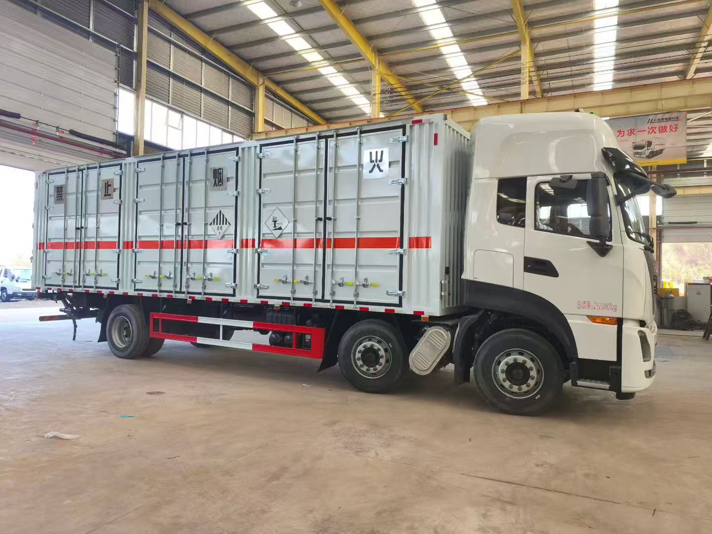 东风天龙三轴350马力国六杂项危险品车选用的是危化品底盘,D320天龙KL,高顶双卧驾驶室,龙擎350马力,1995+5300mm轴距,陕齿9JS135TA变速箱,5.5T双前桥,后桥10T,外形尺寸: 12000,11900,×2550,2500×3980,3900,3800,3600(mm)。货箱尺寸: 9700,9600,9500×2450,2400×2650,2500,2400,2200(mm) ,总质量: 25500(Kg) ,295轮胎,额定载质量:15520,15455,16000,15935,16415,16350(Kg),宽敞驾驶室,卧铺宽,长途运输更省心!